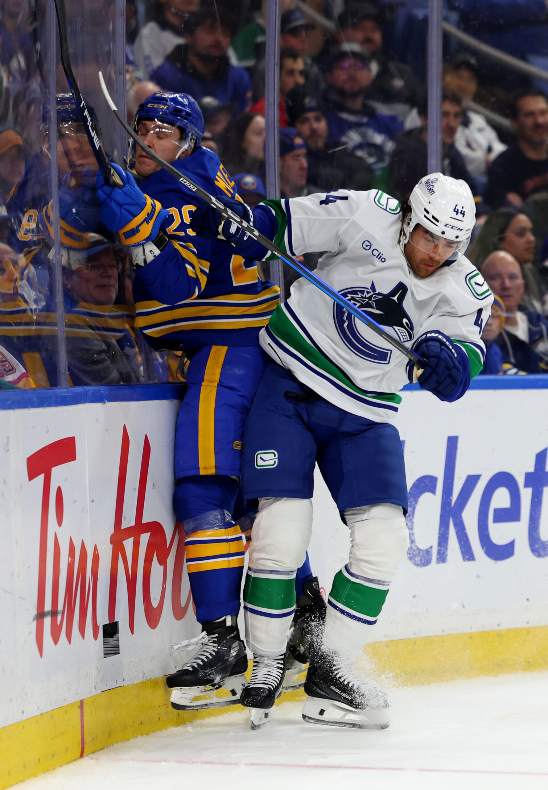 His offense continued to develop in British Columbia. Throughout the past year-and-a-half with the Canucks, Sherwood has been a reliable scorer, registering 36 goals and 63 points in 122 games. Additionally, his physicality has truly been off the charts, averaging 5.5 hits per game — 672 in total.